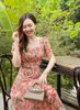 DH V22 Đầm hoa hồng cổ vuông cách điệu