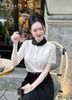 SM318 DE Sơ Mi Ren Đen Cổ Đen